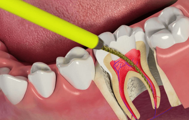 An infected or inflamed tooth can be treated by performing a root canal treatment (RCT). In most cases when a tooth is compromised, it is preferable to save the tooth with RCT if possible. The living part of the tooth, known as the pulp, consists of sensitive nerves and blood vessels. When a tooth becomes infected, the pulp can become very painful. If left untreated, it can allow an abscess to form at the root tip or even allow bacteria to enter the jaw bone. The purpose of RCT is to remove the affected pulp to save the tooth and to prevent the proliferation of the bacterial growth.